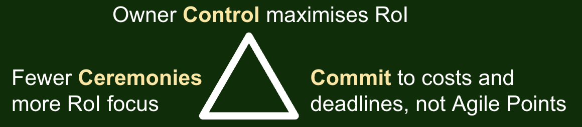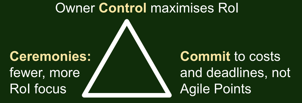 Agile empowers delivery teams. But great techies aren’t always great at financial strategy. PE and VC owners typically have huge business acumen: maximising their transparency and control will increase ROI. Owners want clarity - delivery teams who commit to costs and deadlines, not just Agile Points.